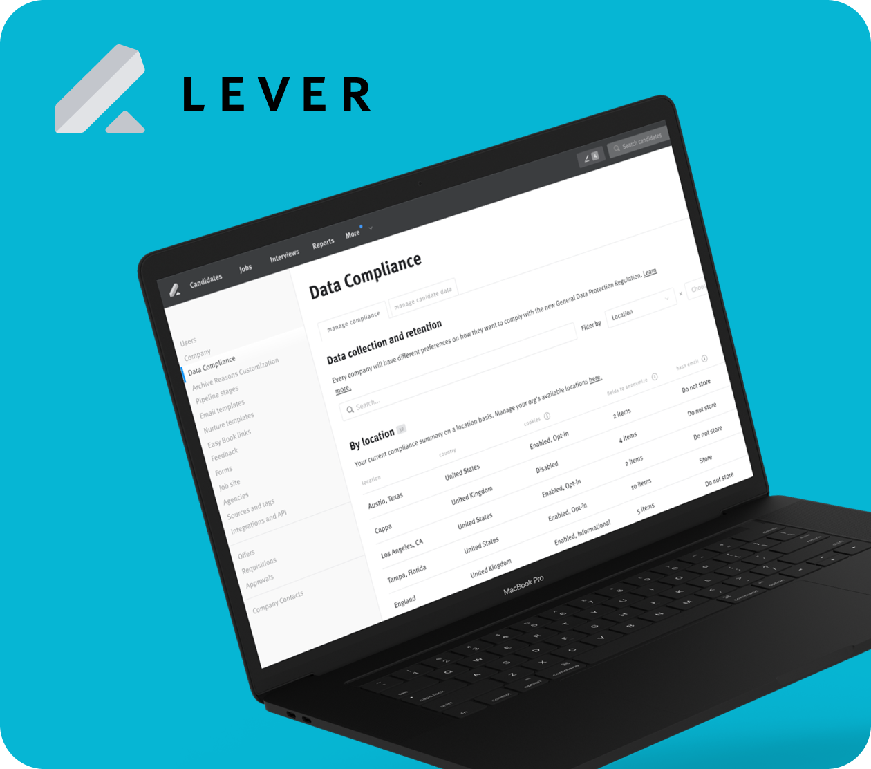 We launched a self-serve GDPR compliance portal built directly into the Lever platform, giving customers full control over how personal data is retained, deleted, and governed across their candidate lifecycle. The experience was designed to balance legal rigor with usability — supporting compliance without slowing teams down. Key functionality included: